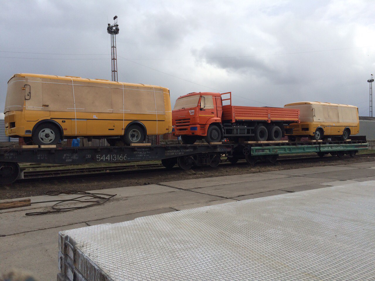 Отправка транспорта на сцепе из платформ для ОАО Ургалуголь, июнь 2017